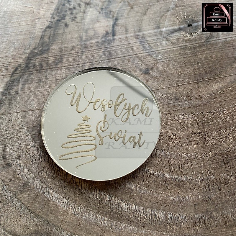 Żeton dekoracyjny z napisem.