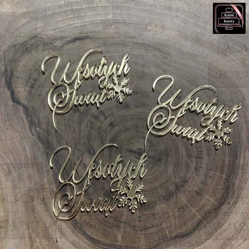 Dekor zestaw 3szt. - "Wesołych Świąt" śnieżynka