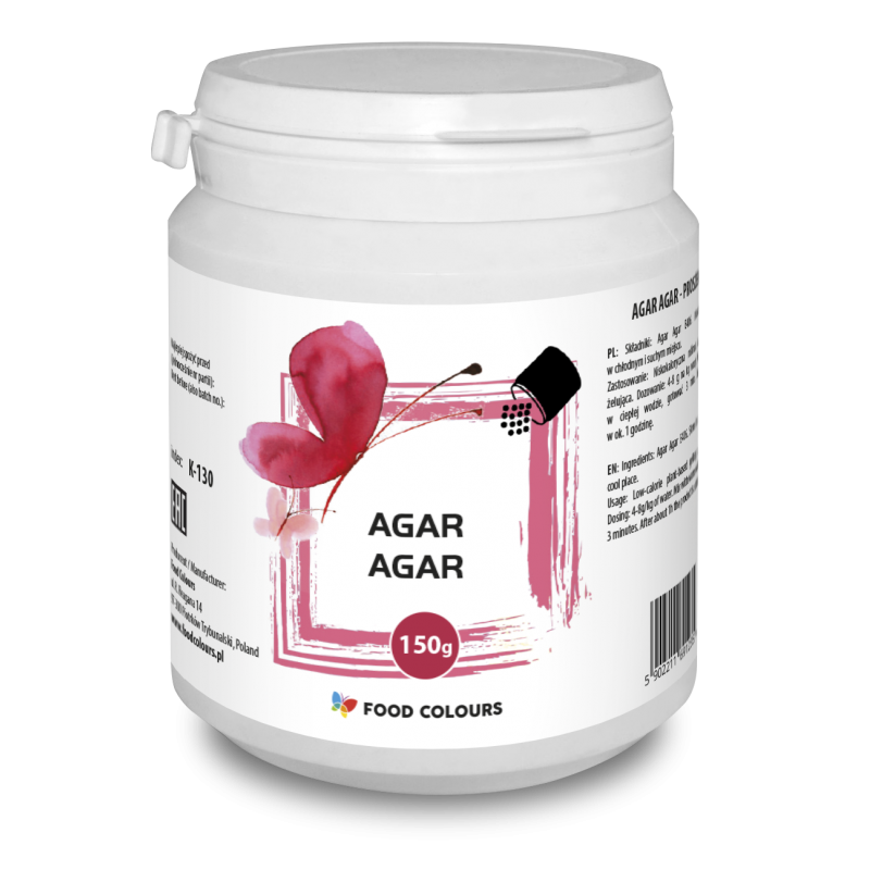 Agar to naturalna, niskokaloryczna substancja żelująca w proszku. Stosowana jako roślinny, wegański zamiennik żelatyny, m.in. do galaretek. Przechowywać w suchym i chłodnym miejscu.