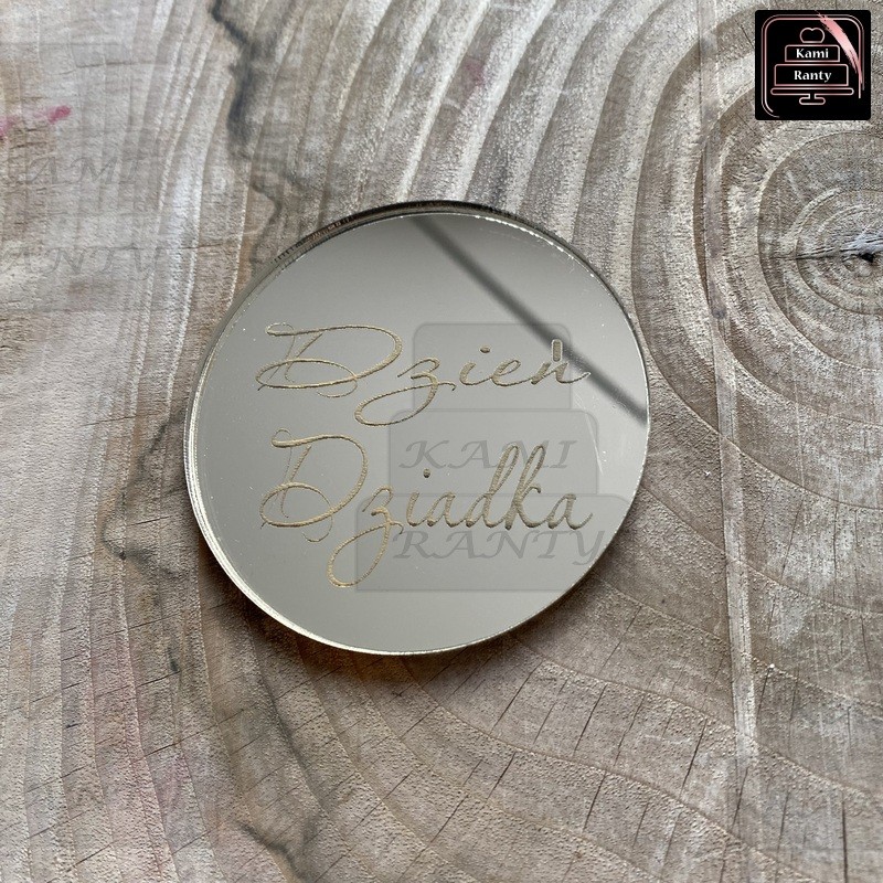 Żeton dekoracyjny z napisem.