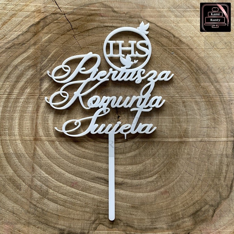 Topper "Pierwsza Komunia Święta" IHS koło, ptaki
