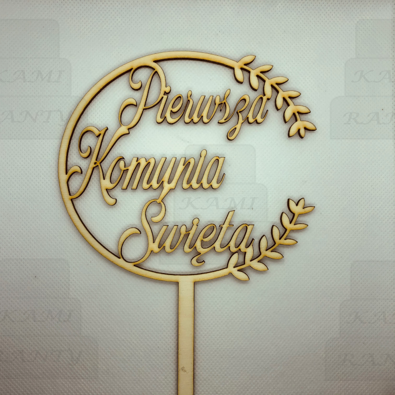 Topper "Pierwsza Komunia Święta" półkole liście