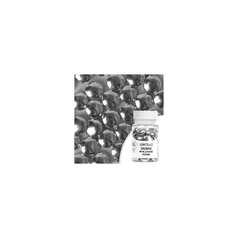 Czekoladowe mini draże w kolorze srebrnym do dekoracji wszelkiego rodzaju deserów i ciast.