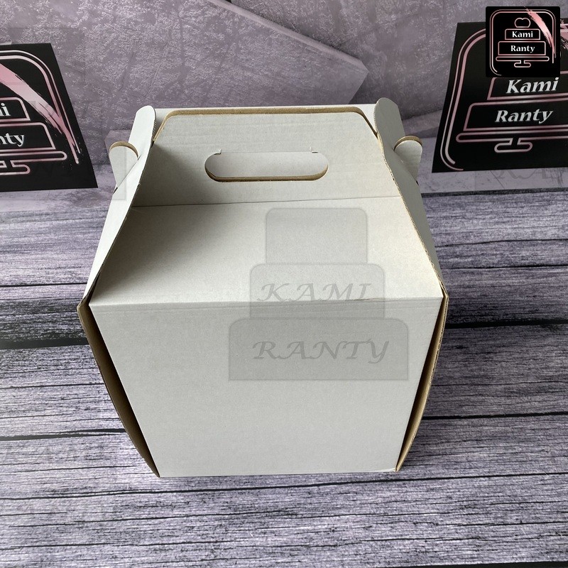 Pudełko o wymiarach 26x26x25 cm w formie tzw. "koszyczka". Karton nadaje się do zapakowania i transportu tortu.