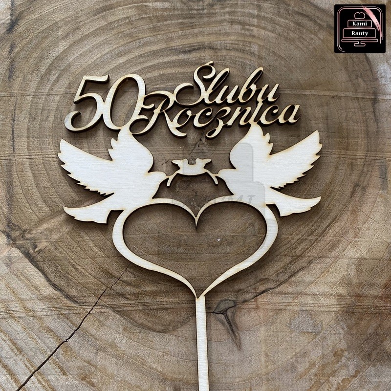 Topper "50 Rocznica Ślubu" ptaki, serce