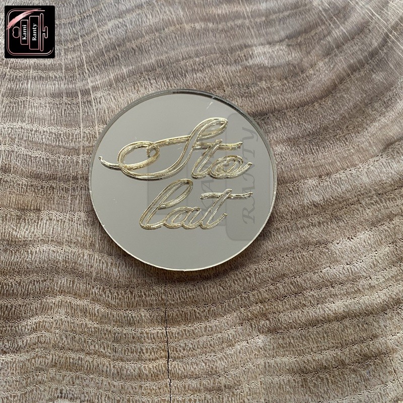Żeton dekoracyjny z napisem.